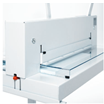 La tapa de seguridad con bisagra tiene que estar cerrada para desbloquear la palanca de corte para el proceso de corte.